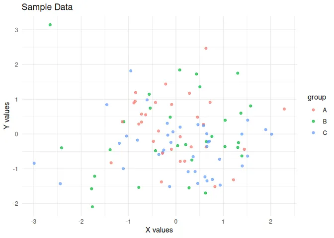 labs(title = "Sample Data", x = "X values", y = "Y values")