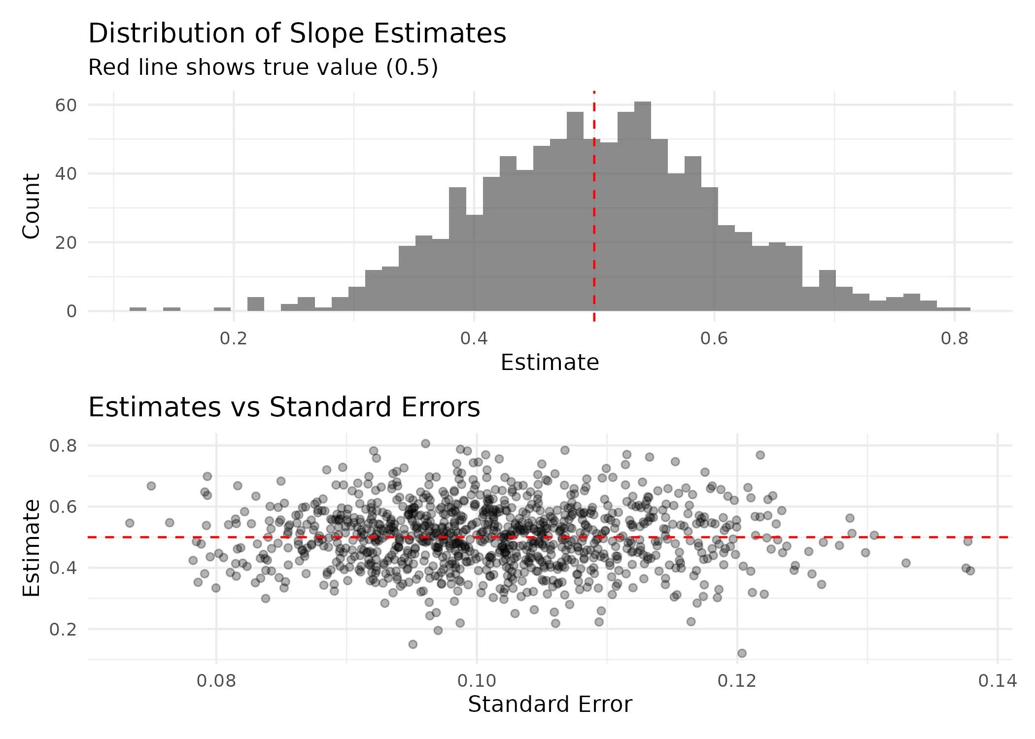 coverage = mean(abs(estimate - 0.5) < 1.96 * se)